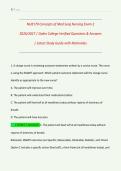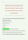 Dremma On this page, you find all documents, package deals, and flashcards offered by seller DrEmma. 946 Documents 0 Flashcards 91 Package deal Community 0 Followers 8 Following 2 Reviews received 0 0 1 0 1 3 months ago • hayface1 NUR 390 – Nursing Care of Adults I (Concordia University St. Paul, 2026/2027) Final Exam Questions and Answers – Complete Exam Material 4 months ago • patriciac C784 Applied Healthcare Statistics – Module 7 Objective Assessment (WGU, 2026/2027) Questions & Answers – Grade A, 100% Correct 1036 items Everything Documents Flashcards Package deal Best sold Newest Rating NUR170 Concepts of Medical-Surgical Nursing Exam 1 2026/2027 | Galen College Actual Exam Questions & Verified Answers | Grade A Study Guide (0) $13.49 0x sold This comprehensive study guide is designed for nursing students enrolled in NUR170 Concepts of Medical-Surgical Nursing at Galen College of Nursing. It features exam-aligned questions with verified correct answers and detailed rationales based on the latest 2026/2027 curriculum update. The guide is structured specifically to support preparation for Exam 1 while aligning with Galen’s competency-based assessment standards.