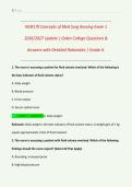 The content covers essential medical-surgical nursing topics assessed in Exam ... i x Package deal Exam (elaborations) • 33 pages • by DrEmma • uploaded 2026 Quick View i x nur 170 • nur 170 NUR 170 Medical-Surgical Nursing Exam 1, 2 & 3 2026/2027 | Actual Exams with Verified Answers & Detailed Rationales | Grade A Study Guide • By  DrEmma NUR170 Concepts of Med Surg Nursing Exam 2 2026/2027 | Galen College Verified Questions & Answers | Latest Study Guide with Rationales (0) $13.49 0x sold This comprehensive study guide is designed for nursing students enrolled in NUR170 Concepts of Medical-Surgical Nursing at Galen College of Nursing. It features exam-aligned questions with verified correct answers and detailed rationales based on the latest 2026/2027 curriculum update. This resource is specifically structured to support preparation for Exam 2 while aligning with Galen’s academic and competency-based assessment standards.
