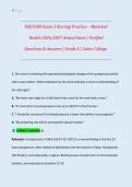 Designed for ADN and RN students, this resource covers high-yield maternal health topics including antepartum, intrapartum, postpartum care, newborn assessment, pati... i x Exam (elaborations) • 60 pages • by DrEmma • uploaded 2026 Quick View i x nsg 3500 • nsg 3500 NSG3500 / NSG 3500 Exam 1 Nursing Practice – Maternal Health Actual Exam 2025/2026 | Verified Answers | Detailed Rationales | Grade A | Galen College (0) $12.99 0x sold This NSG3500 / NSG 3500 Exam 1 Nursing Practice – Maternal Health study guide is fully updated for the 2025/2026 academic year and aligned with Galen College of Nursing curriculum standards. It includes verified questions and answers with detailed rationales, designed to reflect the structure, content, and clinical focus of the actual Exam 1.