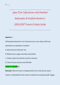 Ideal for health science, nursing, and allied health students completing prerequisite or readiness assessments, this resource covers foundational concepts commonly tested in Apex mock... i x Exam (elaborations) • 116 pages • by DrEmma • uploaded 2026 Quick View i x Apex • Apex Apex Test 2 Actual Questions with Detailed Rationales & Verified Answers | 2026/2027 Grade A Study Guide (0) $13.49 0x sold This focused study guide is designed for students preparing for Apex Test 2. It features exam-aligned, actual-style questions with verified answers and detailed rationales, reflecting current Apex curriculum standards and assessment formats for the 2026/2027 academic cycle.