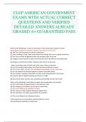 CLEP AMERICAN GOVERNMENT EXAMS WITH ACTUAL CORRECT QUESTIONS AND VERIFIED DETAILED ANSWERS ALREADY GRADED A+ GUARANTEED PASS