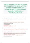 MICHIGAN RESIDENTIAL BUILDER LICENSING EXAM WITH ACTUAL CORRECT QUESTIONS AND VERIFIED DETAILED ANSWERS ALREADY GRADED A+ GUARANTEED PASS