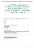 ACCIDENT AND HEALTH INSURANCE EXAM QUESTIONS AND VERIFIED DETAILED ANSWERS ALREADY GRADED A+ GUARANTEED PASS