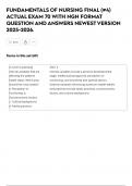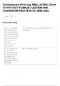 Fundamentals of Nursing FINAL ACTUAL EXAM 70 WITH NGN FORMAT QUESTION AND ANSWERS NEWEST VERSION .