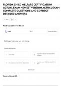 FLORIDA CERTIFICATION CHILD WELFARE ACTUAL EXAM NEWEST VERSION ACTUAL EXAM COMPLETE QUESTIONS AND CORRECT DETAILED ANSWERS