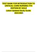 TEST BANK INTRODUCTION TO CRITICAL CARE NURSING 7TH EDITION (2025) comprehensive (Latest 2025/ 2026 Update) Exam Questions and answers