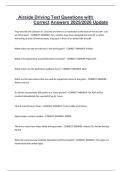 The "Airside Driving Test Questions with Correct Answers 2025/2026 Update" is a verified exam preparation document tailored for individuals seeking certification to operate vehicles in airside zones of airports. Uploaded in September 2025, this guide includes: