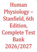 This 2026/2027 Test Bank for Principles of Human Physiology, 6th Edition by Stanfield provides students with comprehensive chapter-based questions covering cellular, tissue, and system-level physiology. Designed for exam preparation, the test bank emphasizes critical thinking, physiological reasoning, and practical application of concepts, helping learners reinforce knowledge and succeed in undergraduate and graduate physiology courses