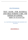 TEST BANK FOR MATERNAL AND CHILD NURSING CARE, 5TH EDITION, BY LONDON