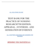 TEST BANK FOR THE PRACTICE OF NURSING RESEARCH7TH EDITION, APPRAISAL , SYNTHESIS , AND GENERATION OF EVIDENCE