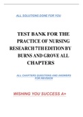 TEST BANK FOR THE PRACTICE OF NURSING RESEARCH 7TH EDITION BY BURNS AND GROVE ALL CHAPTERS