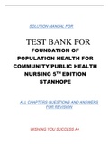 TEST BANK FOR FOUNDATION OF POPULATION HEALTH FOR COMMUNITY/PUBLIC HEALTH NURSING 5TH EDITION STANHOPE