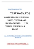 TEST BANK FOR CONTEMPORARY NURSING ISSUES, TRENDS AND MANAGEMENTS 7TH EDITION BYCHERRY & JACOB SOLUTION MANUAL FOR ALL CHAPTERS QUESTIONS AND ANSWERS FOR REVISI