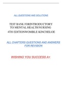 TEST BANK FORINTRODUCTORY TO MENTAL HEALTH NURSING 4TH EDITIONWOMBLE KINCHELOE