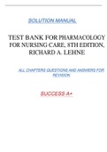 TEST BANK FOR PHARMACOLOGY FOR NURSING CARE, 8TH EDITION, RICHARD A. LEHNE