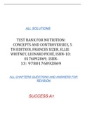 TEST BANK FOR NUTRITION: CONCEPTS AND CONTROVERSIES, 5 TH EDITION, FRANCES SIZER, ELLIE WHITNEY, LEONARD PICHÉ