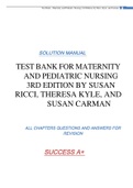 TEST BANK FOR Maternity and Pediatric Nursing BY RICCI, KYLE AND CARMAN