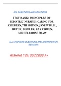 TEST BANK: PRINCIPLES OF PEDIATRIC NURSING: CARING FOR CHILDREN, 7TH EDITION, JANE W BALL, RUTH C BINDLER, KAY COWEN, MICHELE ROSE SHAW