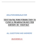 TEST BANK FOR INTRODUCTION TO CLINICAL PHARMACOLOGY 9TH EDITION BY VISOVSKY