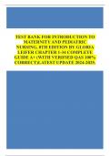 INTRODUCTION TO MATERNITY AND PEDIATRIC NURSING 8TH EDITION LEIFER TEST BANK. Contains Chapters 1 to 34. QUESTIONS with Explanations. CONTENT UNIT I: An Overview of Maternity and Pediatric Nursing 1. The Past, Present, and Future UNIT II: Maternal-Newborn Nursing and Women’s Health 2. Human Repro...