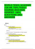 WORLD TESOL ACADEMY (120 HR. TEFL/TESOL COURSE) 2024/2025 VERIFIED 100% QUESTIONS AND ANSWERS