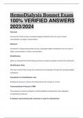 HemoDialysis Bonnet Exam 100% VERIFIED ANSWERS 2023/2024