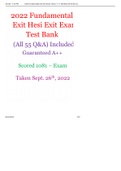 2022 Fundamentals Hesi Exit Exam Version 1 V1 Test Bank All 55 QA Included Guaranteed A