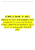 COMPLETE HESI Exit Exam Test Bank. Here is the HESI exit questions and answers to prepare for the HESI exit all versions are covered, you'll never go wrong with this test bank.