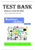 Test Bank For Business in Action 8th Edition by Courtland L. Bovee & John V. Thill, All Chapters 1-20. Table of Contents Developing a Business Mindset Understanding Basic Economics The Global Marketplace Business Ethics and Corporate Social Responsibility Forms of Ownership Entrepreneurship and Small-Business Ownership Management Roles, Functions, and Skills Organization and Teamwork Production Systems Employee Motivation Human Resources Management Labor Relations The Art and Science of Marketin...