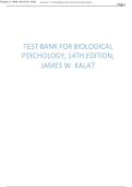 Test Bank For Biological Psychology 14th Edition Author:James W.Kalat With Verified Questions And Answers 100% Complete A+ Grade Latest Version