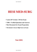 HESI Med Surg Exam (20 Versions, 1500+ Q & A, Latest-2021) / Med Surg HESI Exam / HESI MedSurg Exam / MedSurg HESI Exam / HESI Med Surge Exam / Med Surge HESI Exam |Best Document for HESI Exam |