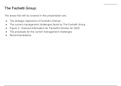 This document includes a mock report and presentation of The Fachetti Group. This is distinction level and reaches the fourth band in each Assessment Objective, marked by a BTEC Unit 6 teacher. This includes the challenges, proposals and recommendations and can be used as a guide to get a distinction in the exam. BUY NOW before the exam.