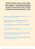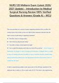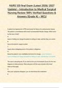 - NURS 120 final Exam (Latest 2026/ 2027 Update) – Introduction to Medical Surgical Nursing Review 100% Verified Questions & Answers [Grade A] – WCU • Exam (elaborations)