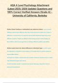 AQA A Level Psychology Attachment (Latest 2025/ 2026 Update) Questions and 100% Correct Verified Answers [Grade A] – University of California, Berkeley
