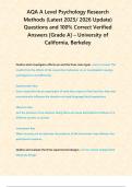 AQA A Level Psychology Research Methods (Latest 2025/ 2026 Update) Questions and 100% Correct Verified Answers [Grade A] – University of California, Berkeley