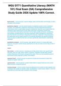 WGU D771 Quantitative Literacy (MATH 101) Final Exam (OA) Comprehensive Study Guide 2026 Update 100% Correct.