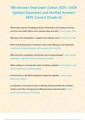 100 elevator final exam (Latest Update) Questions and Verified Answers 100- Correct -Grade