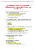 2025 Pharmacology Final Exam 100 questions with verified answers. Graded A+