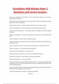 Foundation AQA Biology Paper 1 Questions and correct answers.Foundation AQA Biology Paper 1 Questions and correct answers.