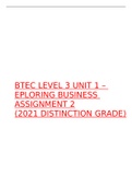 BTEC LEVEL 3 UNIT 1 – EPLORING BUSINESS ASSIGNMENT 2 (2021 DISTINCTION GRADE)