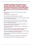 Certified Lactation Counselor Exam Update 2023-2024 Certified Lactation Counselor Final Exam Latest 2023-2024 Questions and Correct Answers Rated A+