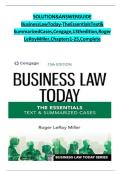 Solution and Answer Guide for Business Law Today - The Essentials Text & Summarized Cases, Cengage, 13th Edition, by Roger LeRoy Miller, Verified Chapters 1 - 25, Complete Newest Version