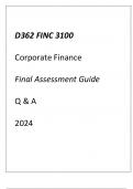 (WGU D362) FINC 3100 CORPORATE FINANCE FINAL ASSESSMENT GUIDE Q & A 2024.