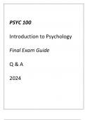 (UMGC) PSYC 100 Introduction to Psychology Final Exam Guide Q & A 2024.