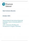 Pearson Edexcel International Advanced Subsidiary (AS) In Chemistry Paper 1 2023 Mark Scheme (WCH11/01 Unit 1: Structure, Bonding and Introduction to Organic Chemistry)