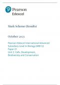 Pearson Edexcel International A Level Biology Paper 1 Mark Scheme 2023 (WBI12 Unit 2: Cells, Development, Biodiversity and Conservation)