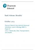 Pearson Edexcel International A Level Biology Paper 1 Mark Scheme 2023 (WBI11 Unit 1: Molecules, Diet, Transportation and Health)