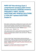 - NURS 5357 Neurobiology Exam 3 comprehensive questions With Correct Detailed Solutions (VERIFIED Answers)| FREQUENTLY MOST TESTED QUESTIONS AND VERIFIED SOLUTIONS @ 2026-2027 Updated QUESTIONS Graded A+ • Exam (elaborations)