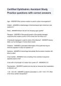 The Certified Ophthalmic Assistant (COA) Test Bank provides a complete collection of multiple-choice, scenario-based, and application questions with verified answers for students and professionals preparing for the COA certification exam. Covers ophthalmic anatomy, patient assessment, eye care procedures, diagnostic testing, clinical protocols, and patient safety. Designed for self-study, exam preparation, and practical skills review. Fully updated for 2026/2027 to align with current COA exam st...