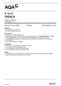 AQA A-level FRENCH Paper 2 Writing June 2021 QP